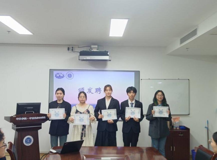 分团委2022级副书记史潇璇进行就职发言。她讲述了自己这一年多来在分团委的点点滴滴。她感谢分团委带来的机遇和挑战,也希望新一届的分团委能够继续努力,共同创造分团委更好的明天。张艳梅老师为2021级分团委员工骨干颁发聘书。