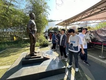 聆听完讲解后,同学们来到烈士雕像前。树影婆娑间,烈士们视死如归、慷慨赴义的眼神让每位同学都为之震撼。了解硝烟中的历史往事,缅怀这些为民族独立和人民解放做出卓越贡献的先烈们,不仅是为了铭记历史勿忘国耻,更是为了秉承烈士遗志,传承烈士精神,让红色基因、革命薪火代代相传,激励新时代青年为中华民族的伟大复兴贡献一份薪薪之火。