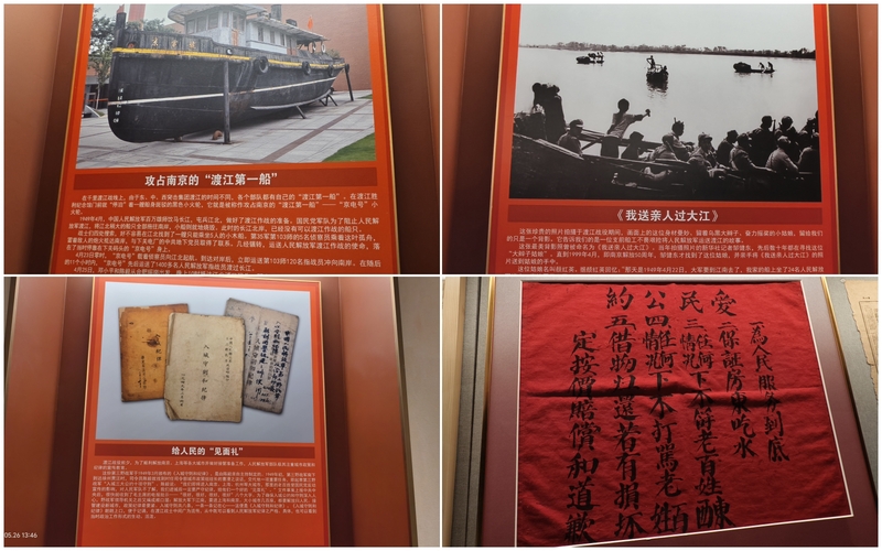 南京渡江胜利纪念馆以500余幅历史照片、400余幅珍贵文物资料、多个历史场景、历史绘画和视频演播辅陈,翔实生动地再现了人民解放军取得渡江战役胜利的光辉历程和丰功伟绩。师生党员依次参观“风雨苍黄”、“天翻地覆”、“人间正道”和“胜利之都”场馆四部分一幅幅鲜活的历史图片,一件件珍贵的历史遗物,再现了当年人民解放军百万雄师过大江的历史场景。