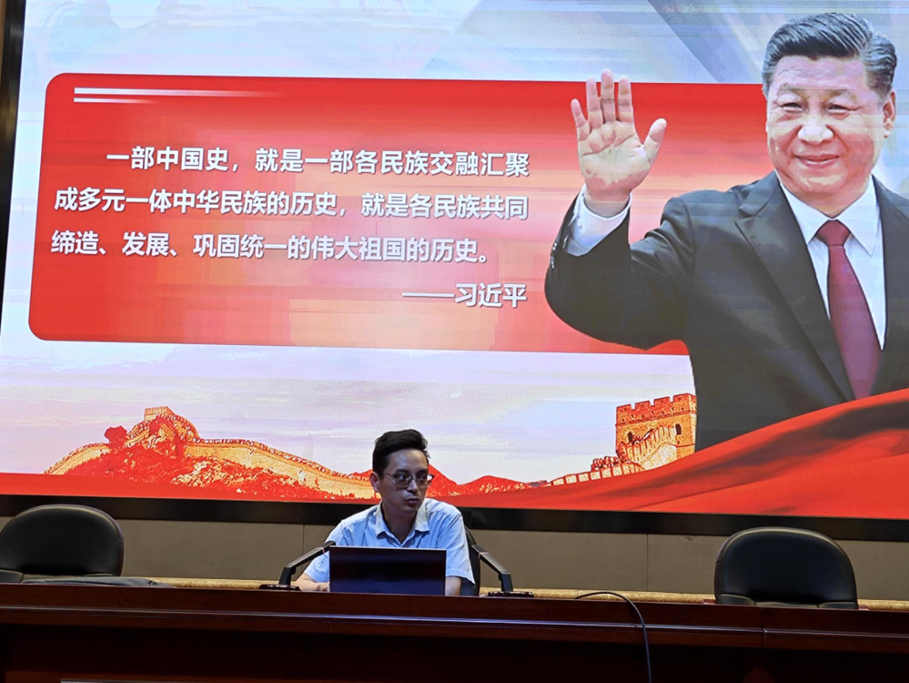 6月4日下午,M88mansion体育副经理陶伟伟以“铸牢中华民族共同体意识”为题目,向2023级同学讲授了课程。