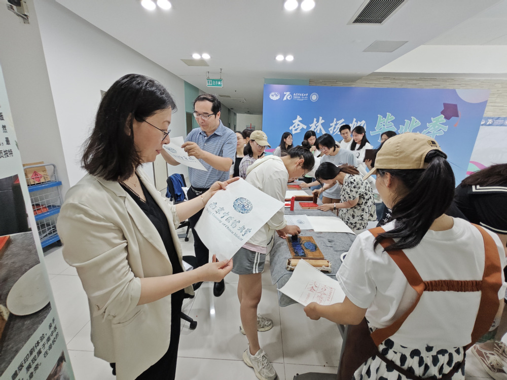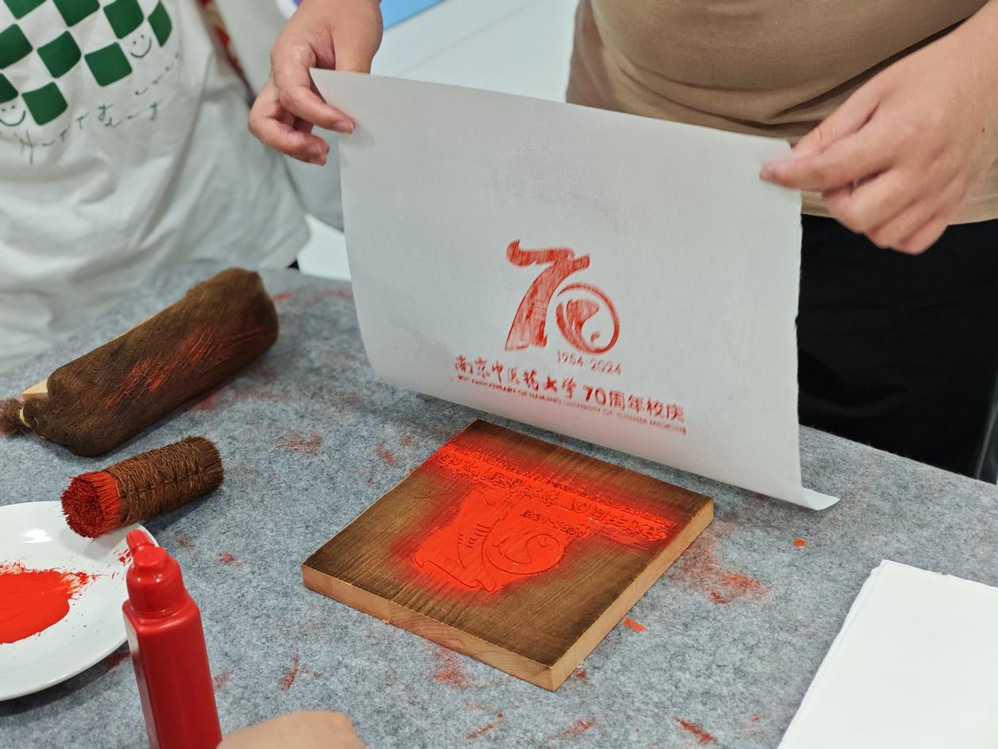 同时公司联合图书馆为毕业生提供纪念印章打卡、雕版印刷体验活动,活动现场设置了献礼校庆明信片留言板。毕业生在公司纪念本上印上南中医校徽、M88mansion体育院徽、70周年校庆标识等印章,通过雕版印刷亲自体验印刷技术的魅力,印刷出南中医图标、中医经典书页等具有中医药文化特色的雕版画,在留言板上写下对母校70周年华诞的祝福,沉浸式参与让毕业生充分体会到浓浓母校情。