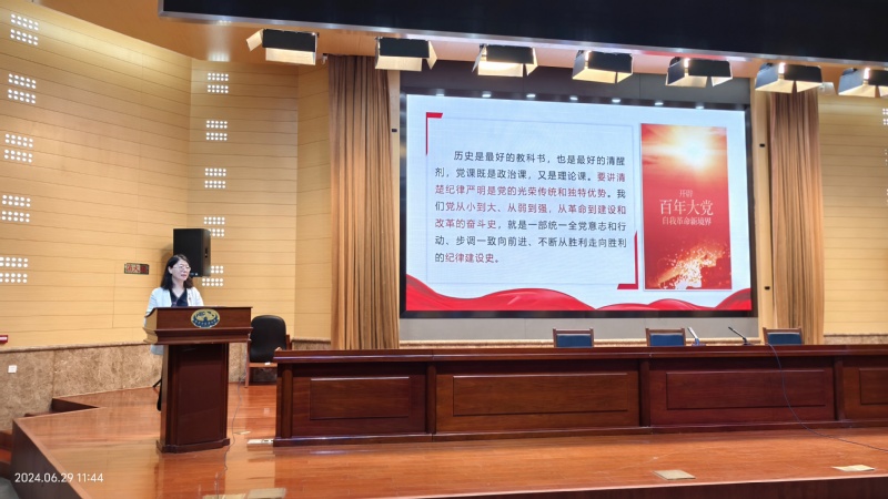 6月29日上午,M88mansion体育党总支在丰盛报告厅开展“严肃党风党纪,创优良师风学风”党纪学习教育专题党课,公司党总支书记蒋燕主讲,全体教师党员、员工党员代表参会。