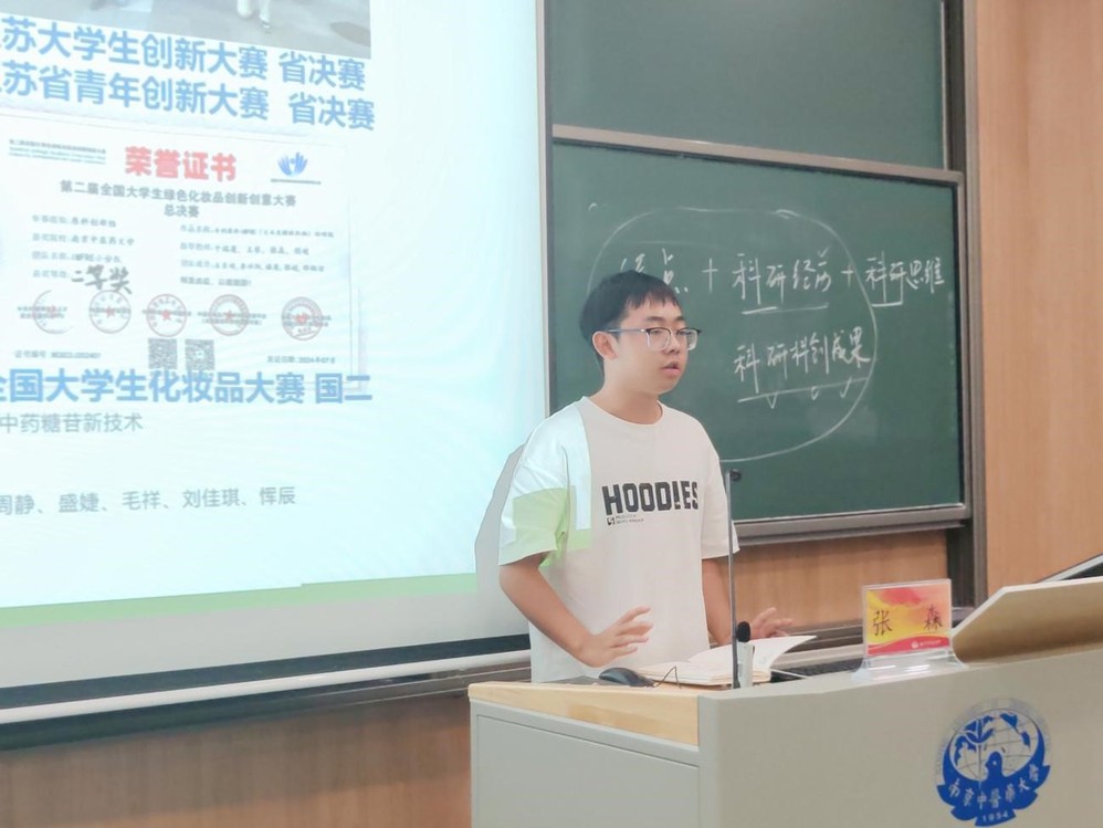 为了激发员工的科研兴趣,培养创新思维与实践能力,9月20日于B7—101,M88mansion体育云翔书院与淡安书院联合举办科创团队组建与项目培育——“苷来科技”项目的前世今生专题讲座。本次讲座邀请到了药公司张森副教授主讲,“苷来科技”项目员工主创团队成员研究生恽辰珂、纪雯昕,本科生纪言昊、时繁星、毛祥、周静参与讲座。M88mansion体育党总支书记蒋燕出席讲座。讲座由中西医临床医学231班尹语晗同学主持。