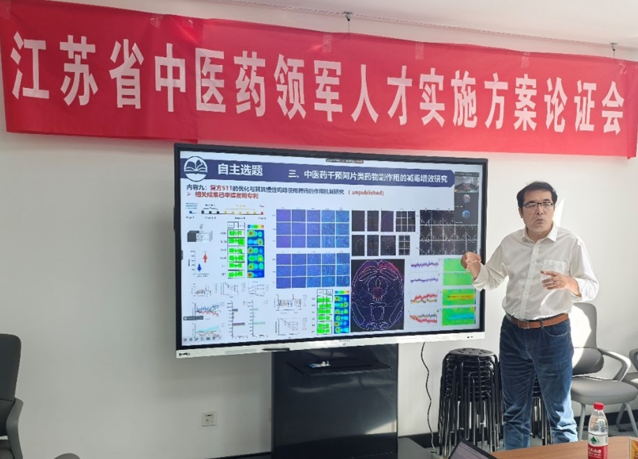 曲淼教授认为在中医药高层次人才建设中,要时刻不忘中医之根,注重借助多学科前沿技术来解决中医药领域的核心问题,努力培养成为中医药领域的“大先生”。李熳教授认为吕教授团队可拓宽戒毒课题研究方向,进一步提升课题在情志病研究领域的价值;同时要注重戒毒知识的科普宣传和科普读物发表等。谭善忠主任则建议开展高质量的多中心临床观察研究,努力推进复方511的临床应用转化。陶伟伟教授从复方511的配伍科学内涵和院内制剂应用转化方面提出诸多建议。最后,论证委员会主任贾立军教授首先表达了吕志刚教授入选江苏省中医药领军人才培养计划的热烈祝贺;同时在该人才培养中,要注重多学科交叉合作;另外建议积极引进企业力量推进复方511的应用转化,让中医药研究成果早日落地生根,提高中医药转化医学的发展;最后建议在科研项目申请中要勇于承担重点、重大项目,通过江苏省中医药领军人才培养,尽快成为国家级的高层次人才,最大限度地推动中医药现代化的战略发展目标。