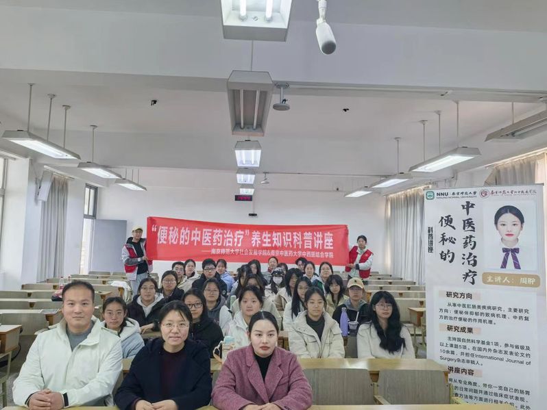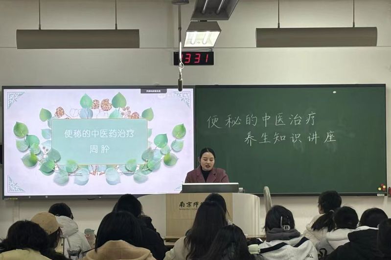 1213日,王明艳第二党支部成员周肸老师于南京师范大学开展了便秘的中医治疗养生知识科普讲座。本次讲座旨在帮助同学们了解日常生活中可能发生的肠胃问题以及相关的临床症状、诊断检查、用药治疗等,周老师从中医药角度深入展开,不仅解答了同学们相关的疑问,还进一步普及了中医药养生保健知识。