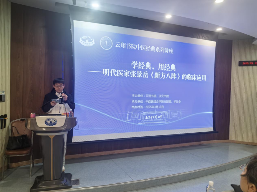 2025年3月13日下午,M88mansion体育云翔书院联合淡安书院,特邀MS88官方网站中医药文献研究院方剂室主任吴承艳教授,开展明代医家张景岳《新方八阵》的临床应用讲座。M88mansion体育党总支书记蒋燕及公司200余名员工参加了讲座。讲座由中西医临床医学242班曹文熙主持。