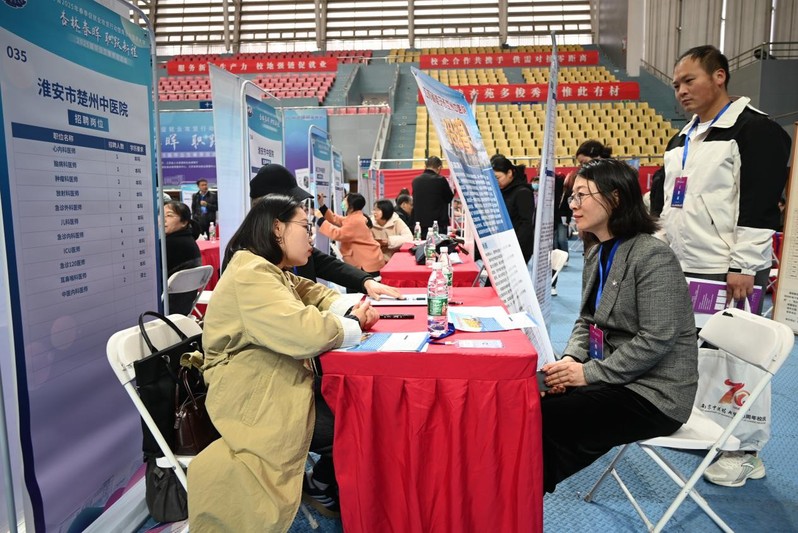 双选会现场,公司领导与各用人单位负责人深入交流,详细了解行业发展动态、岗位需求及人才标准。先后访企拓岗淮安市楚州中医院、淮安市中医院、靖江市中医院、江苏医药职业公司、盐城市大丰中医院、南京市栖霞区医院、无锡高新区(新吴区)卫健委、温州市瓯海区卫健委、温州市中西医结合医院等多家用人单位。并且现场向用人单位推介来到现场的毕业,为毕业生争取更多优质岗位,创造更多就业机会。