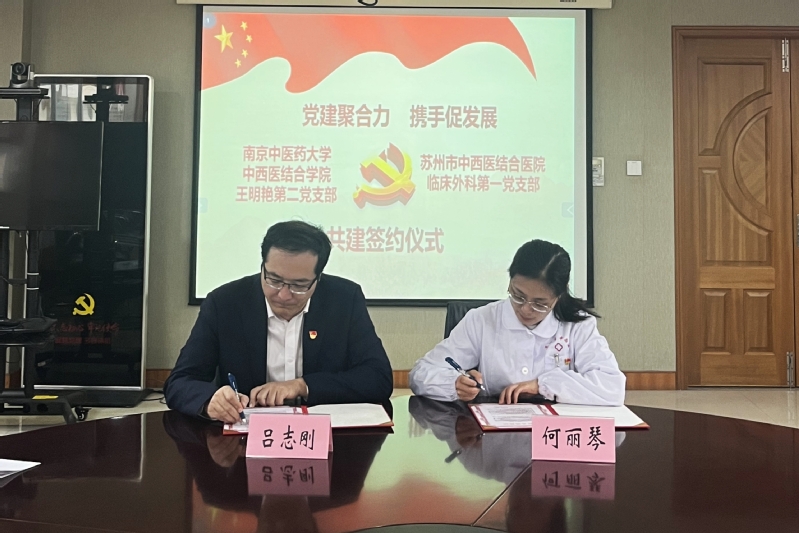 钱建学对公司王明艳第二党支部师生的到访表示热烈欢迎,表示希望通过支部共建,进一步深化M88mansion体育与苏州市中西医结合医院在临床、教学及科研等各方面合作,共同推动医学人才培养和医疗服务水平提升。吕志刚介绍了党支部的组织架构与发展历程,支部党员教师的专业医学背景和在中医药领域的科研成果,展示了教师党支部在思想引领、人才培养、社会服务等方面取得的显著成效。双方围绕“组织共建、资源共享、业务协同”等方面深入交流,共同探索党建引领下的“党建+”协同发展模式。在全体与会人员的共同见证下,双方支部书记签署《党建共建协议书》。