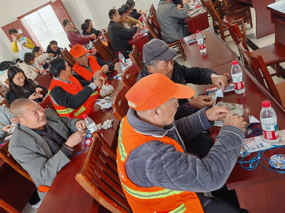 宣讲结束后,志愿服务团队师生与村民们进行了互动。他们向村民们发放《蜱虫宣传介绍手册》,根据村民的文化水平程度引导村民填写线上、线下的调查问卷。李友旺同学还为村民讲解了中药驱虫香囊的配方组成与功效。在志愿队员工的指导下,村民们兴致勃勃地动手制作香囊。活动现场弥漫着草药的清香,大家互相交流,现场气氛热烈。一位村民表示:“以前对这个小虫子的危害不太了解,今天学到了很多,感谢集团专家和老员工为我们讲解!”。