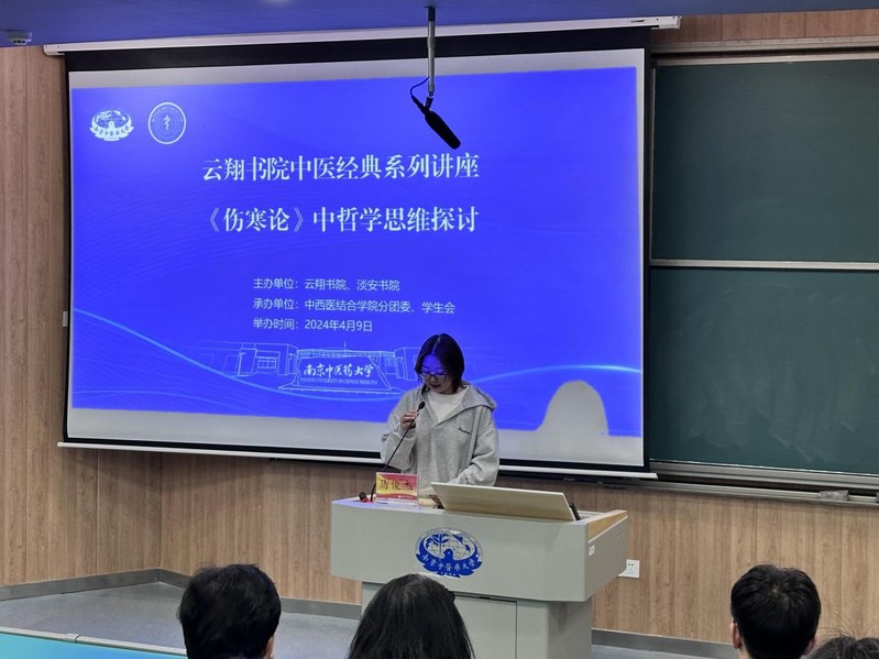 4月9日下午,M88mansion体育云翔书院联合淡安书院特邀公司中医公司伤寒教研室马俊杰副教授举办《解码〈伤寒论〉哲学密码》专题讲座,围绕中医辩证思维与经典方剂应用展开深入探讨。帮助同学们理解中医哲学思想在临床与方剂中的实际应用,提升辩证思维能力,推动中医文化的传承与创新。讲座由中西医临床医学243班张一诺主持。