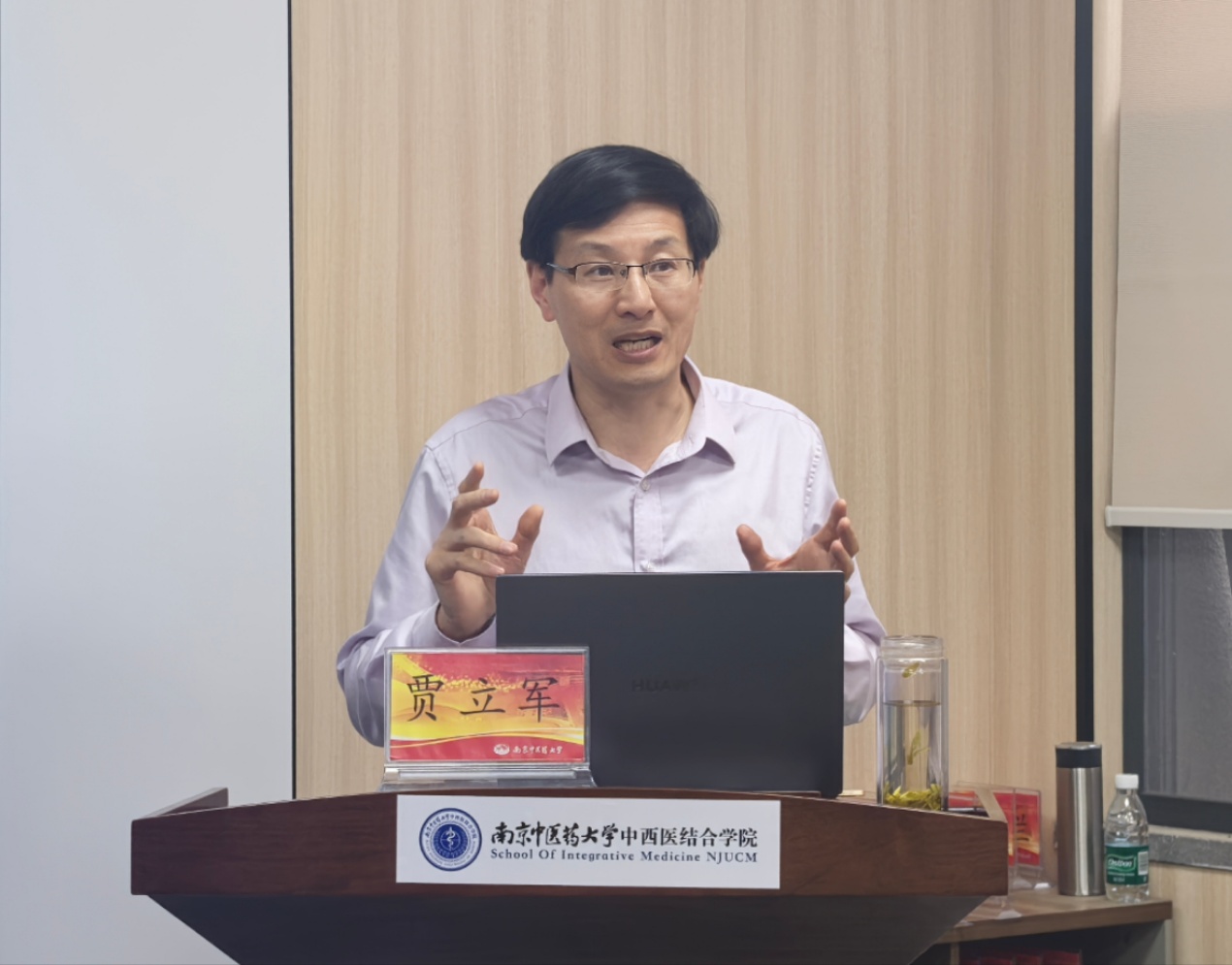 公司经理贾立军作“青研聚”系列活动第一讲,以“中西医结合肿瘤学研究思路探索”为题,立足中医经典理论,围绕“少阳厥阴”理论框架,系统阐述了靶向衰老治疗肿瘤的中西医结合研究新路径,深入解析类泛素化修饰介导的衰老调控机制,结合具体研究案例,展现该机制在抗肿瘤靶点挖掘及创新药物研发中的关键作用。讲座中,贾经理通过理论阐释与前沿研究成果展示相结合的方式,让参会师生全面了解了中西医结合肿瘤学领域的最新研究动态与学术前沿。此外,贾经理结合自身在国内外知名高校的科学研究经历,向青年科研工作者分享宝贵经验,鼓励青年科研工作者要凝心聚力、不畏艰难,扎根自己的研究领域,一步一个脚印,要敢于付出、勇于创造,主动发现和领略科研的魅力。