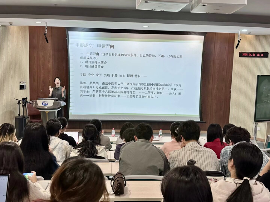 为了帮助同学们顺利开展创新创业项目的申报,提升创新创业项目申报水平,2025年4月24日下午,M88mansion体育云翔书院联合淡安书院举办《老员工创新创业项目申报指导》讲座,邀请教务处实验教学管理中心朱昭平老师,M88mansion体育中西医结合内科学教研室裴可老师主讲。讲座由中西医临床医学241班张晓敏主持。